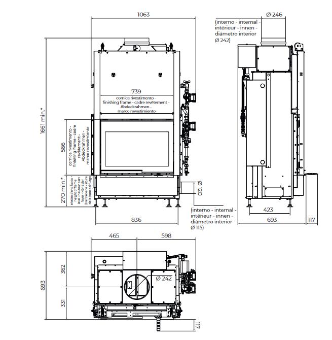 - Diametrul canalului de fum 25 cm