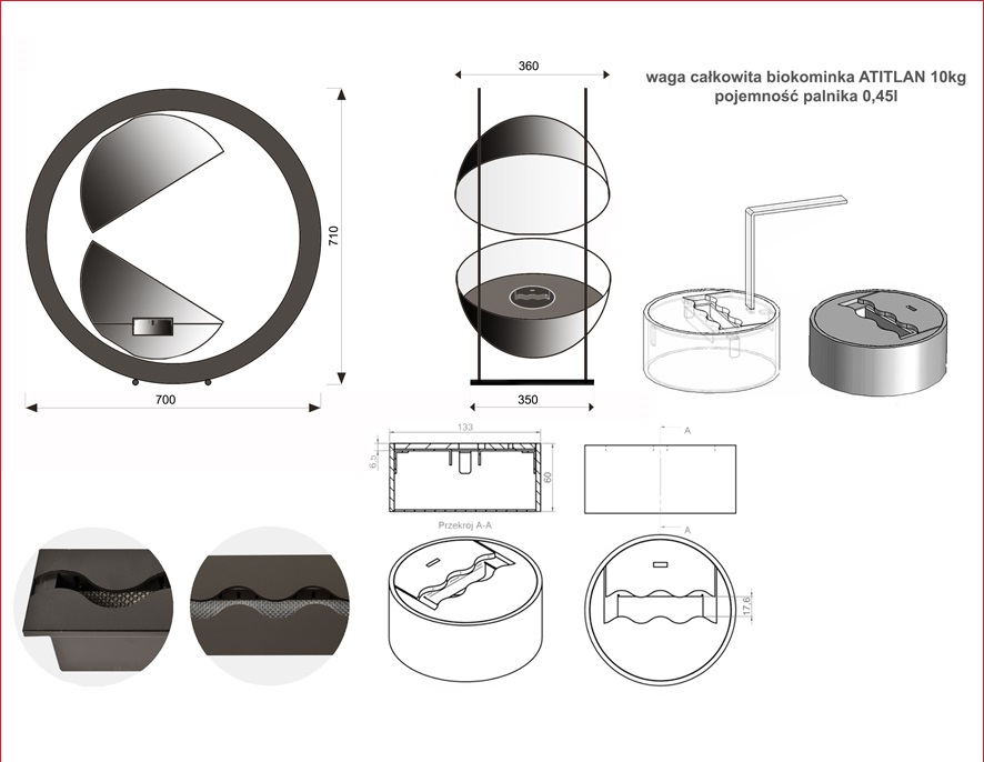 În interiorul bolului caracteristic există o inserție rotundă pentru biocombustibil.