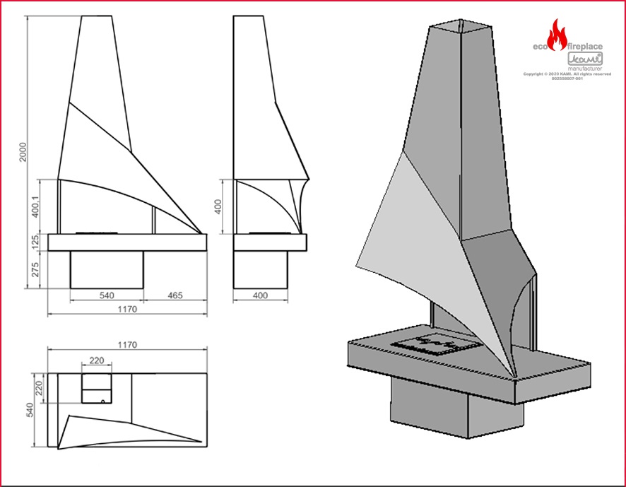 Construcția bioșemineului Camerun este realizată din tablă de oțel cu grosimea de 3 mm, vopsită cu pulbere negru, semi-mat NON 000.