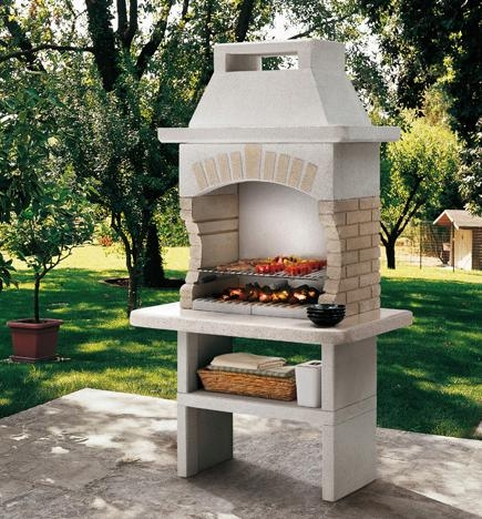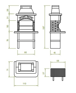 Structura realizata din Marmotech, lateralele din caramizi, blat din Marmotech si granit bej, vatra din placi refractare, gratar standard 68×40 cm reglabil pe patru inaltimi, livrat cu adeziv special pentru asamblare.