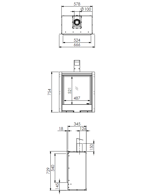 Focarul pe gaz DRU Global 55XT CF este compatibil cu diverse coșuri de fum existente.
