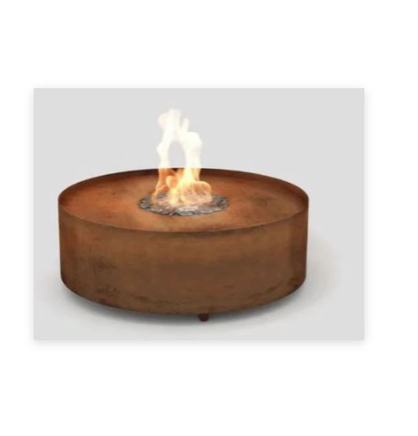 Galio Corten Fire Pit este un șemineu cu gaz automat de exterior, închis într-o carcasă rotundă, rezistent la intemperii.
