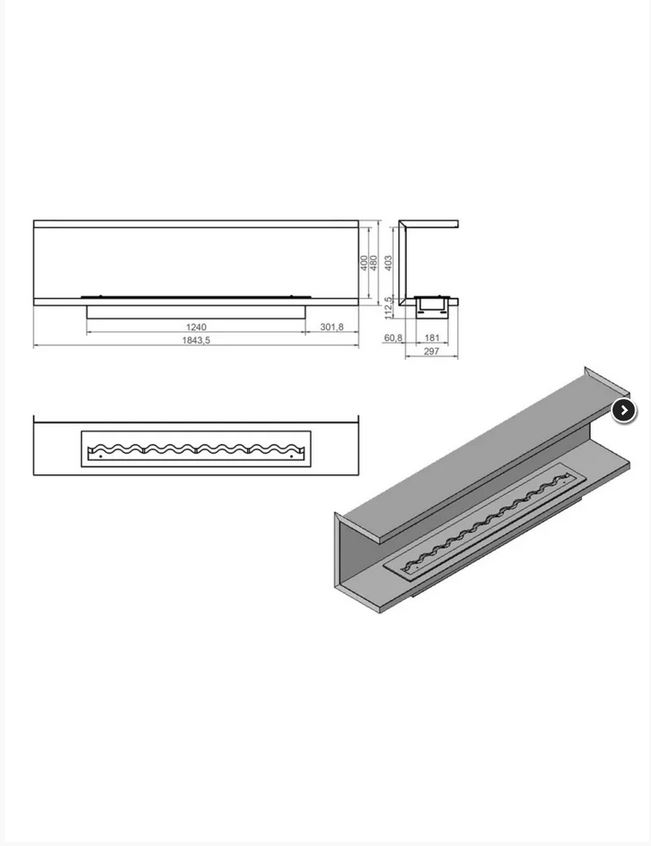 Construcția acestui model constă dintr-un cadru de oțel (focar și cadru) cu grosimea de 1,5 mm, vopsit în câmp electrostatic cu o vopsea neagră semi-mată, rezistentă la căldură. În interiorul focarului se află o cameră care conține un insert de biocombustibil de 1300/200 mm. Este disponibilă și o versiune Spiro, perfectă pentru modelele cu televizor deasupra șemineului. Aceasta permite eliminarea căldurii puternice generate de focar.