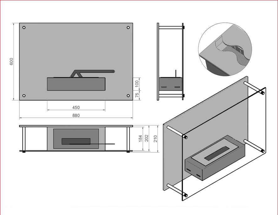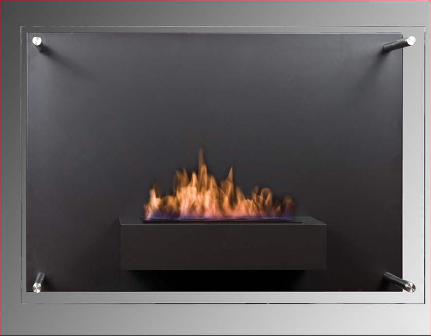 Este realizat din doi pereți paraleli. Acest lucru dă un efect uimitor, deoarece focul este foarte vizibil pe un fundal negru.