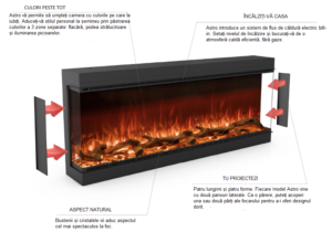 Șemineul electric Astro prezintă tehnologia LED 3D de ultimă generație pentru a oferi cele mai reale flăcări. Este ideal pentru locuri publice, proprietăți comerciale și proiecte inovatoare de design interior.